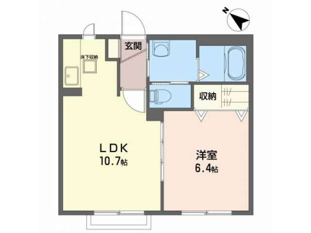 | 詳細間取 | 1LDK (洋6.4帖×1、LDK10.7帖) | ||