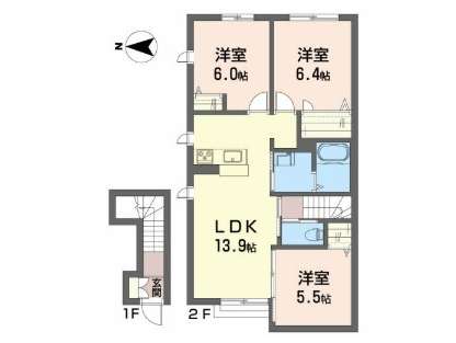 | 詳細間取 | 3LDK (洋5.5帖×1、洋6帖×1、洋6.4帖×1、LDK14.5帖) | ||