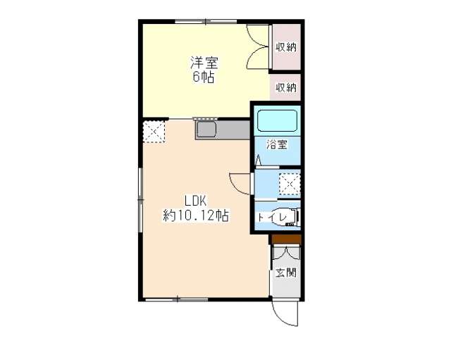 | 詳細間取 | 1LDK (洋6帖×1、LDK10.12帖) | ||
